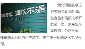 湖北雨睛防水工程有限公司地處湖北宜昌高新技術公司獲得了國家質量管理體系認證證書,也取得了湖北省建筑防水材料專業(yè)協會會員資格;并榮獲了湖北省建設廳頒發(fā)的建筑施工貳......[更多]